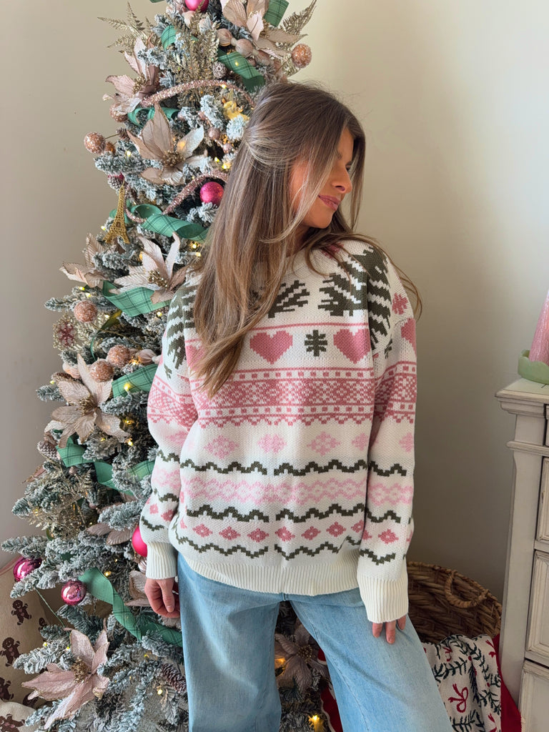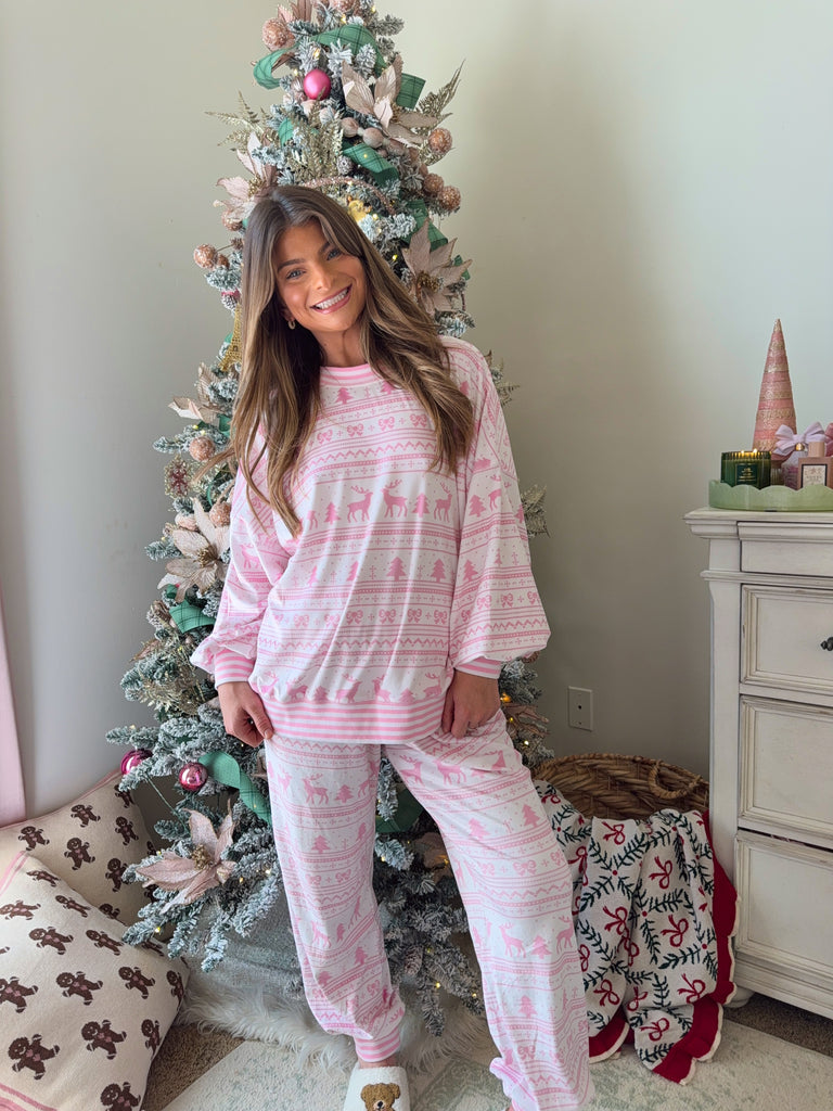 Eloise Pink Mistletoe Striped Pajama Set - Pink