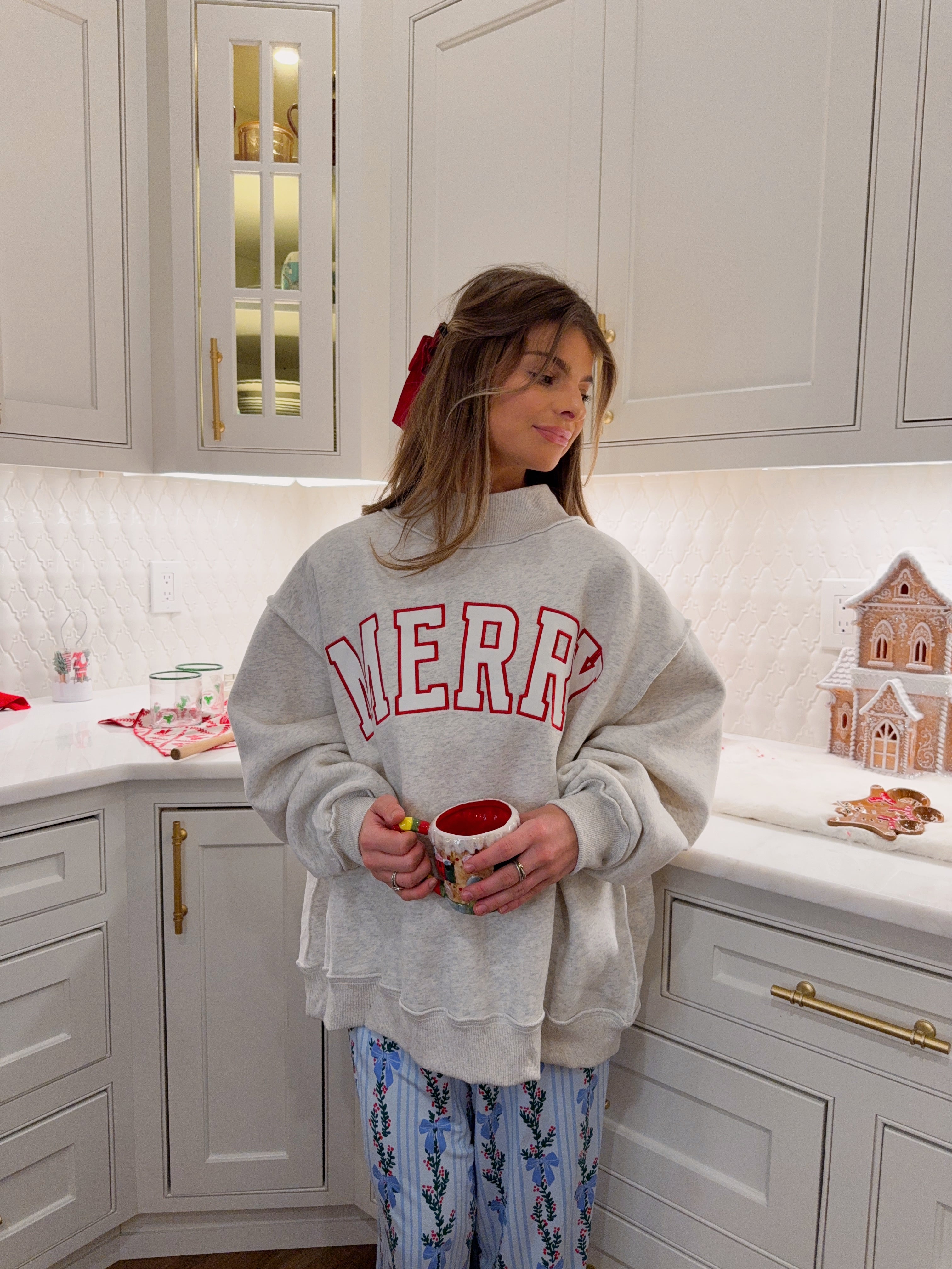 'MERRY' embroidered mock neck sweatshirt with an oversized fit