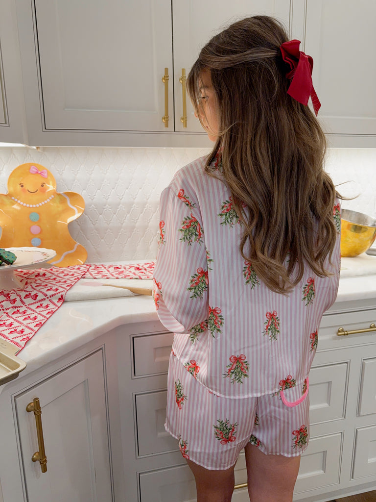 Eloise Pink Mistletoe Striped Pajama Set - Pink