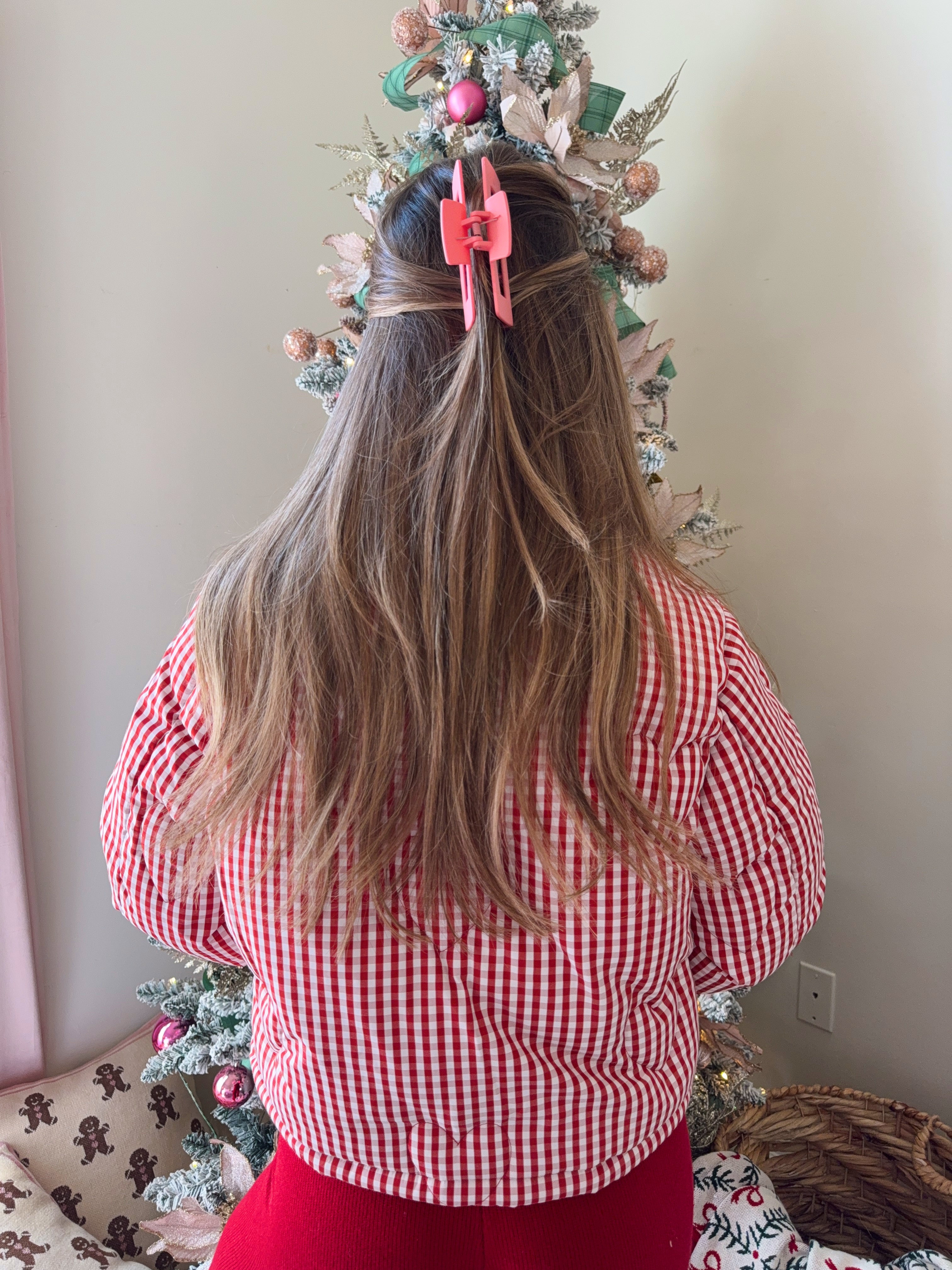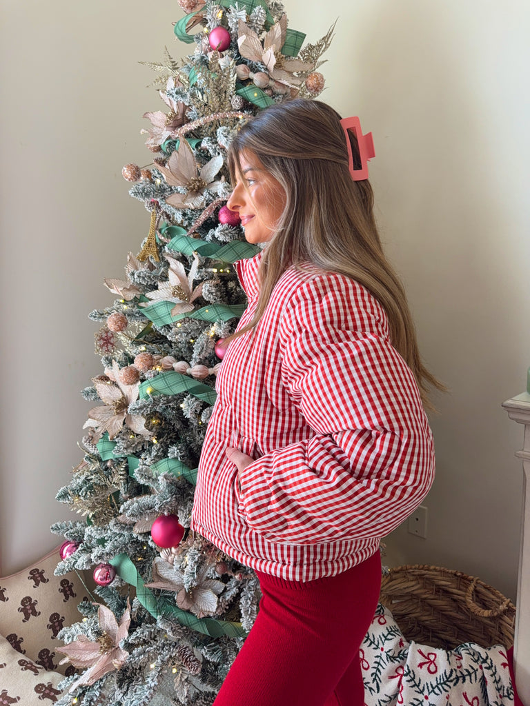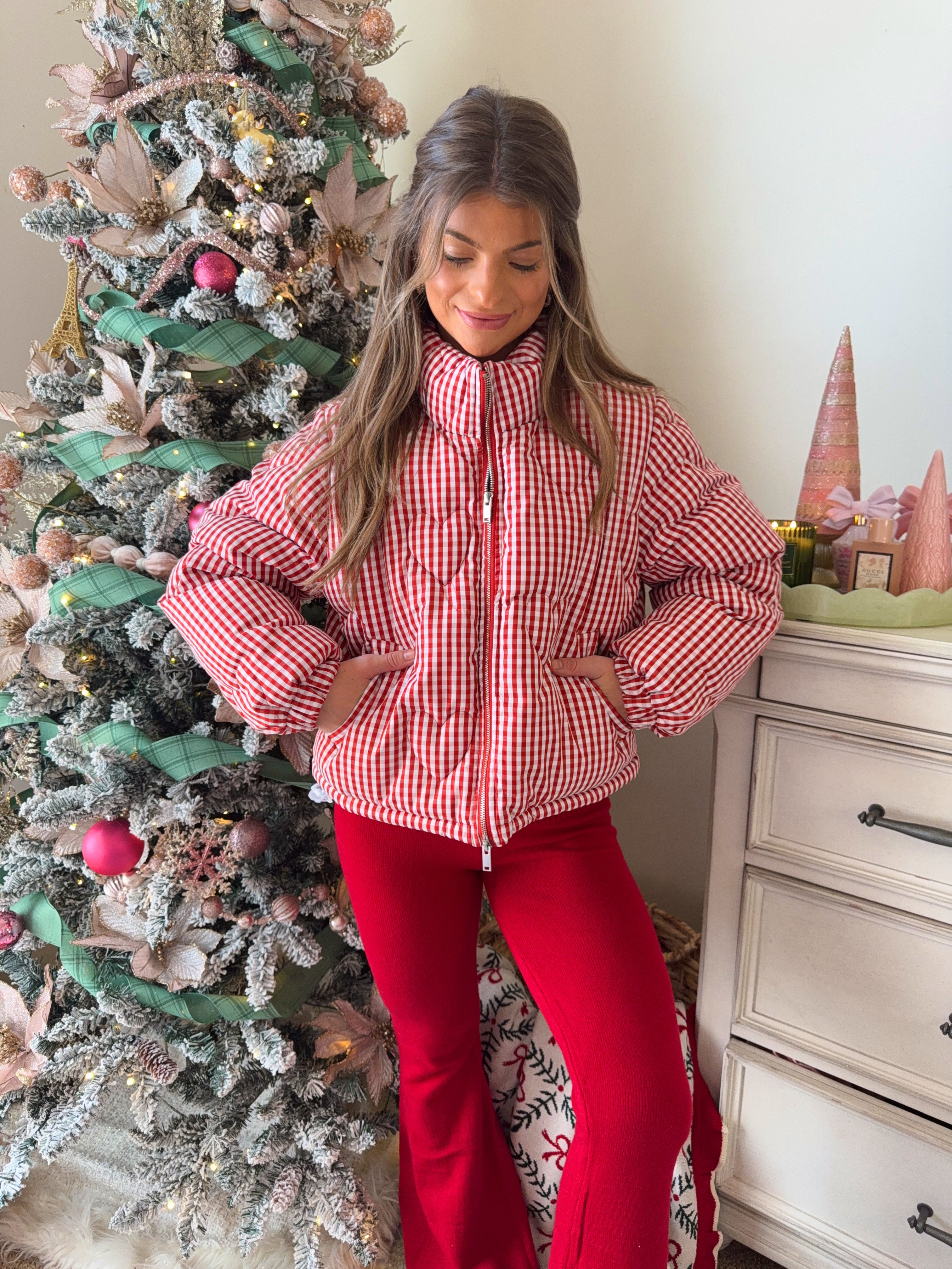 Prancer Gingham Print Puffer Jacket with Heart Shaped Quilting