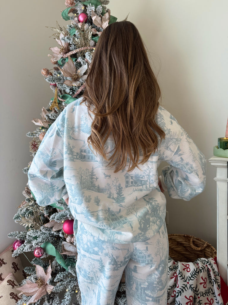 Ski Lodge Sweat Set - Frosted Blue / White