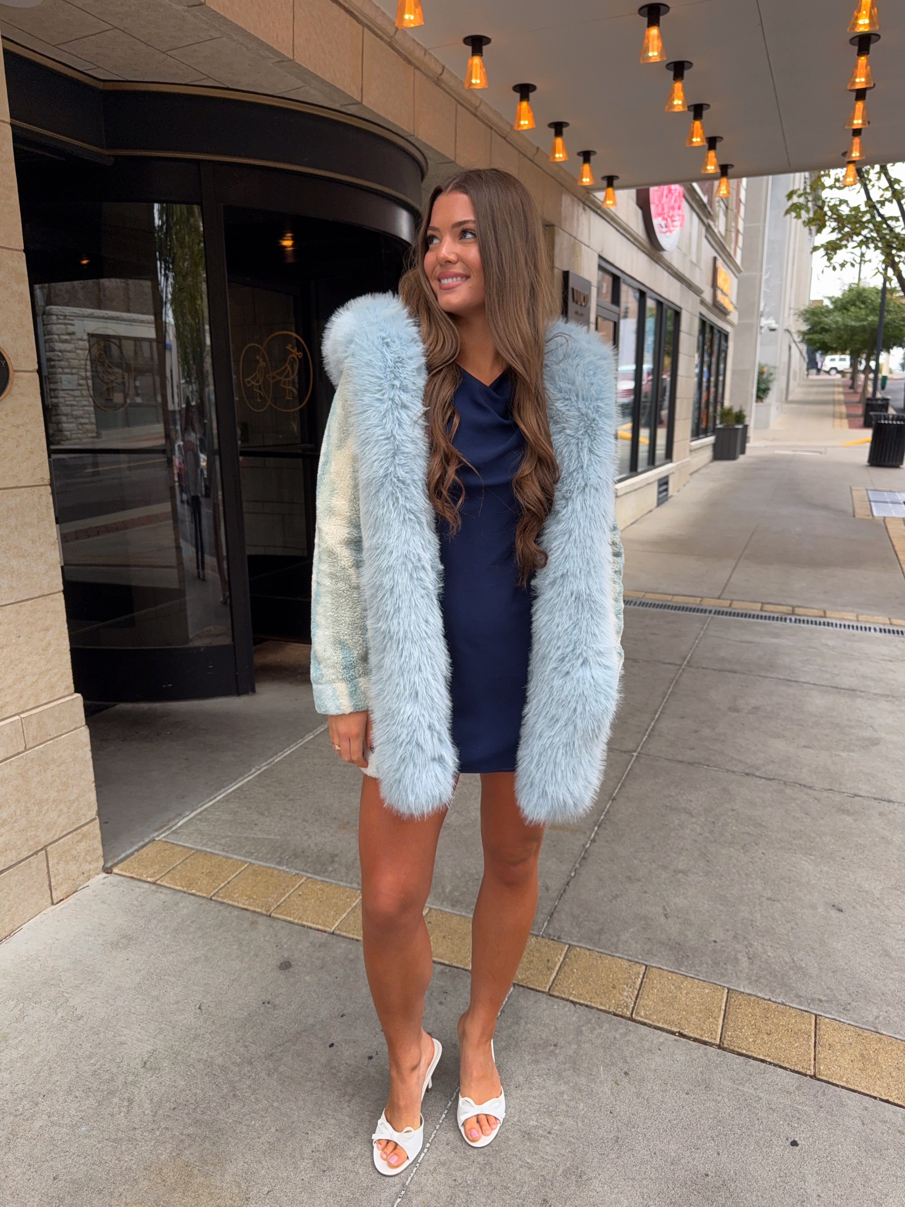 Snow Bunny Faux Fur Coat - Frosted Blue