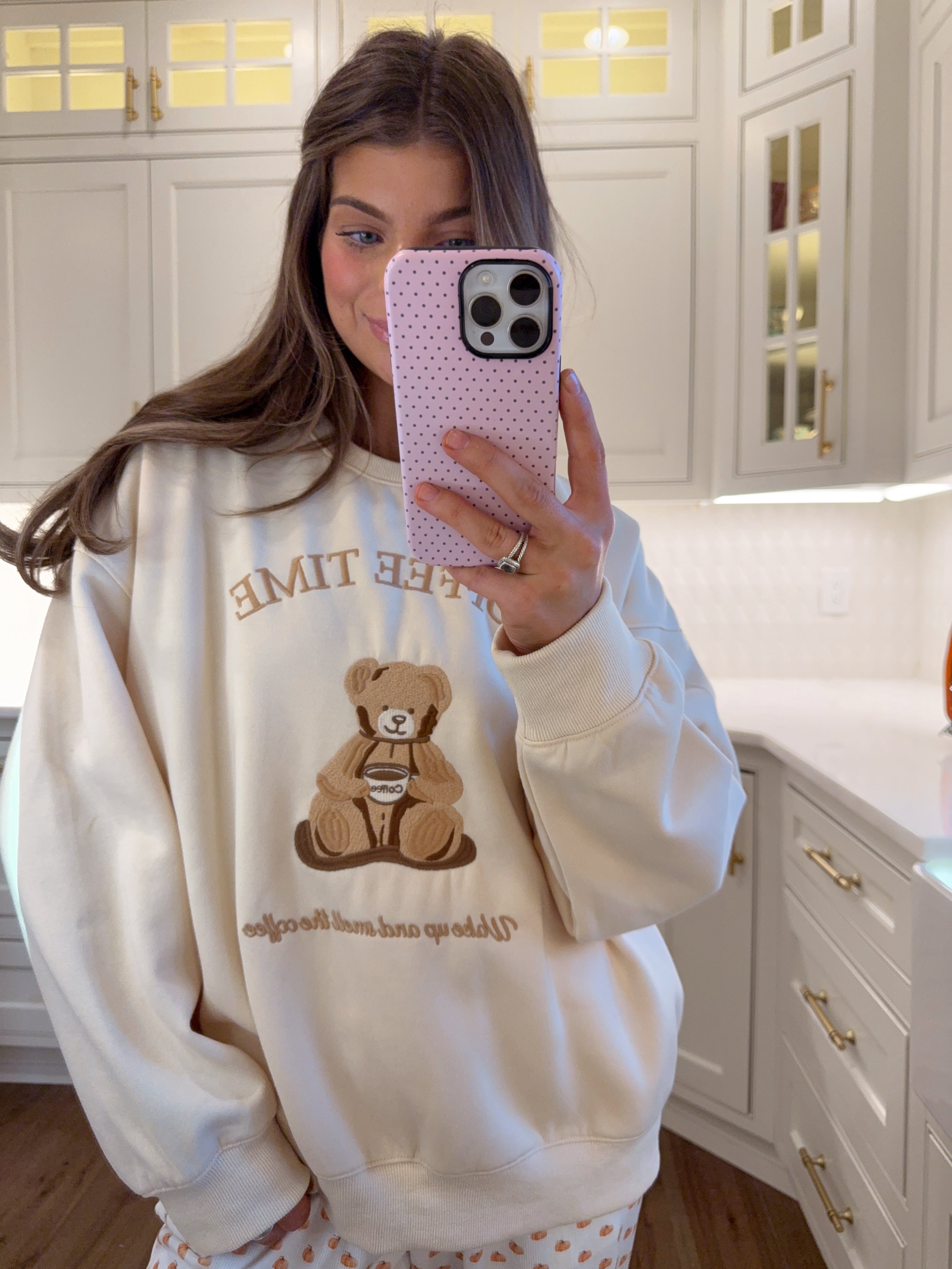 Crew neck 'Coffee Time' ready bear embroidered sweatshirt