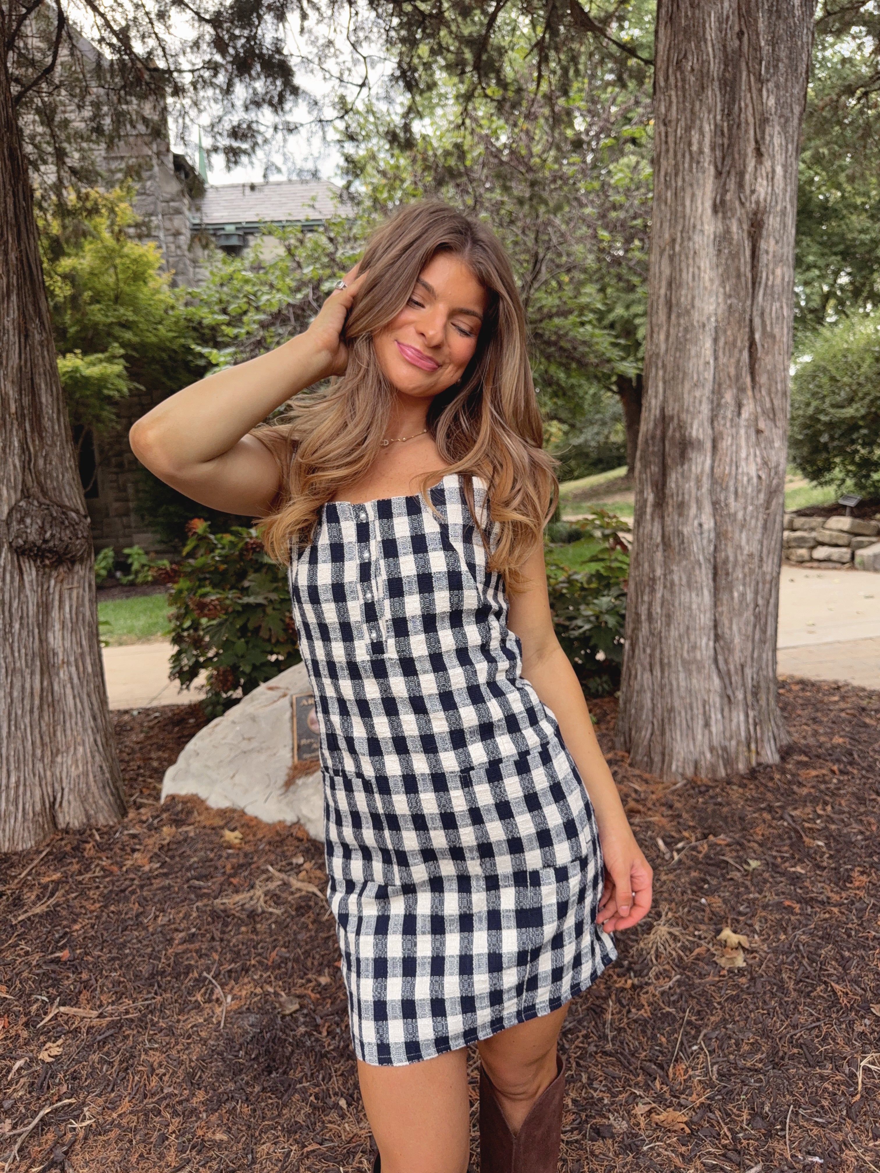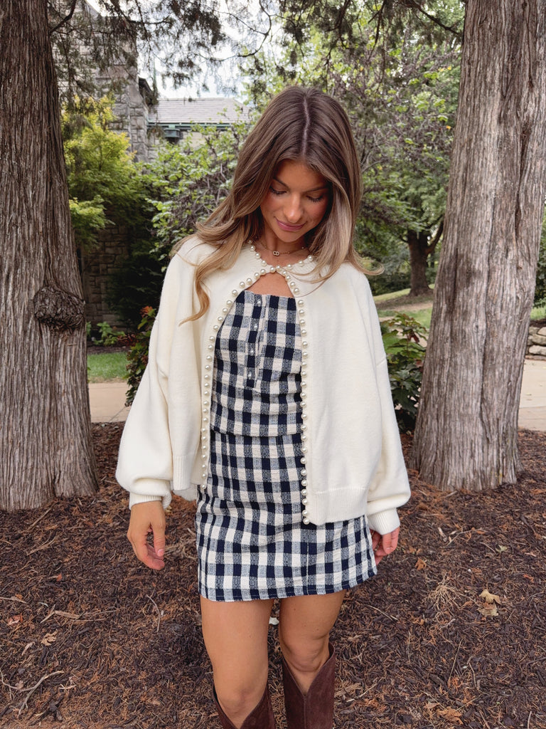 Trotter Gingham Tweed Mini Dress - Navy / Cream