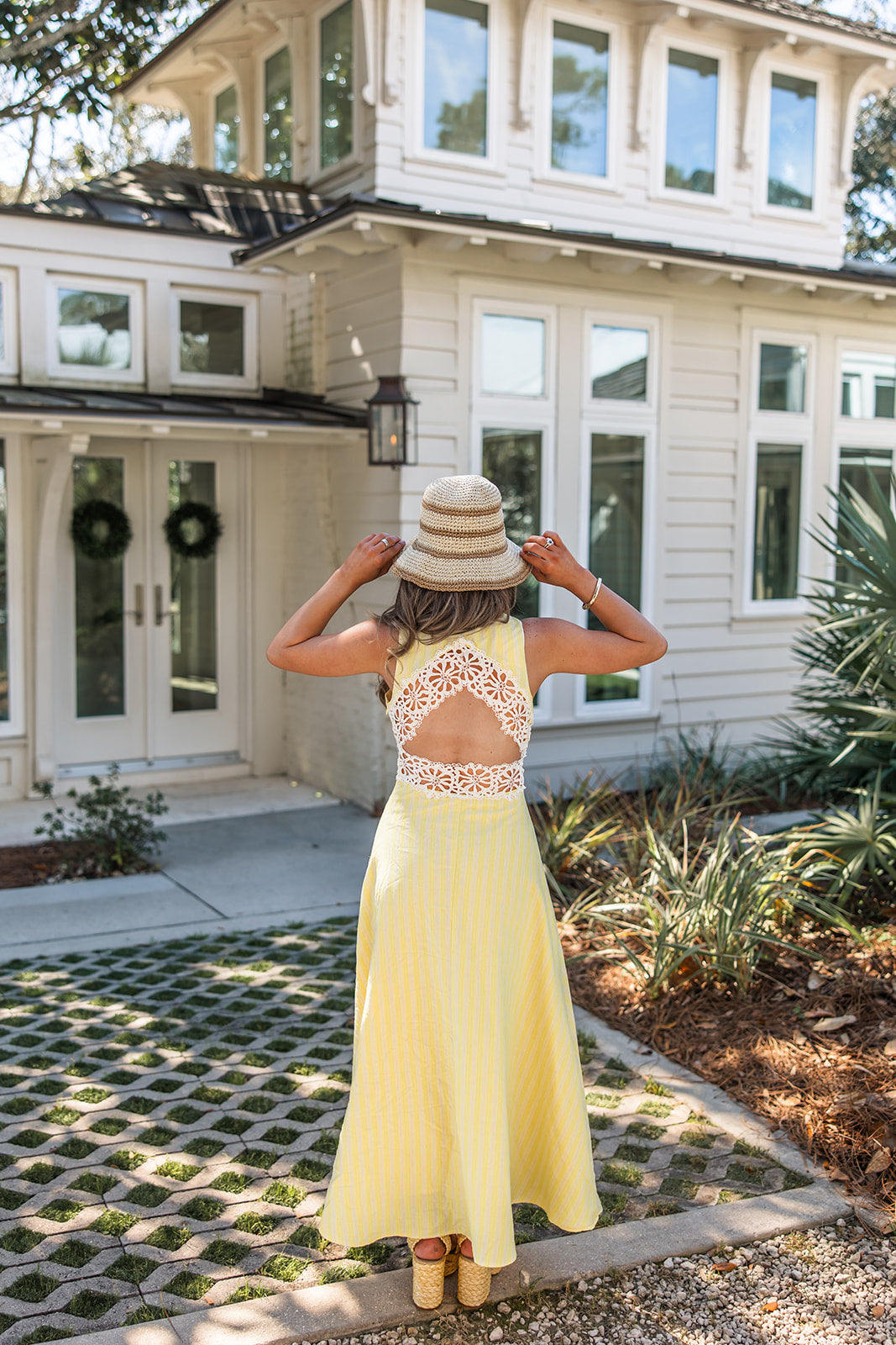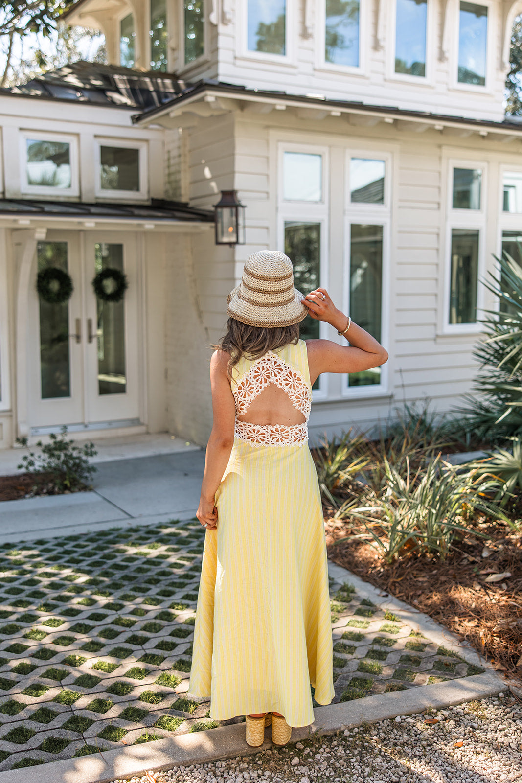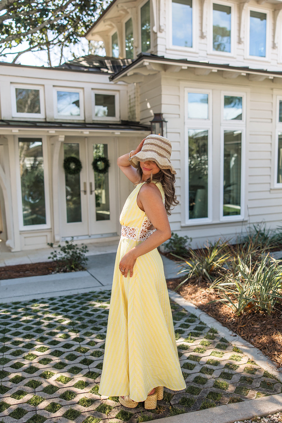 - Yellow stripe maxi dress