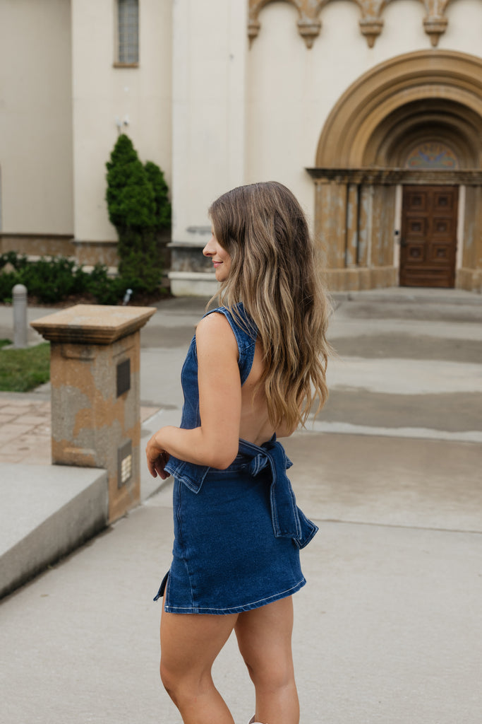 Elevate your style with the Levi Denim Set in Dark Wash, featuring a chic open-back top with a playful bow detail and a flattering mini skirt. This coordinated set combines classic denim durability with a modern, feminine silhouette, perfect for turning heads at casual outings or weekend events. Embrace effortless cool and confidence in this versatile duo designed to keep you comfortable and stylish all day long.