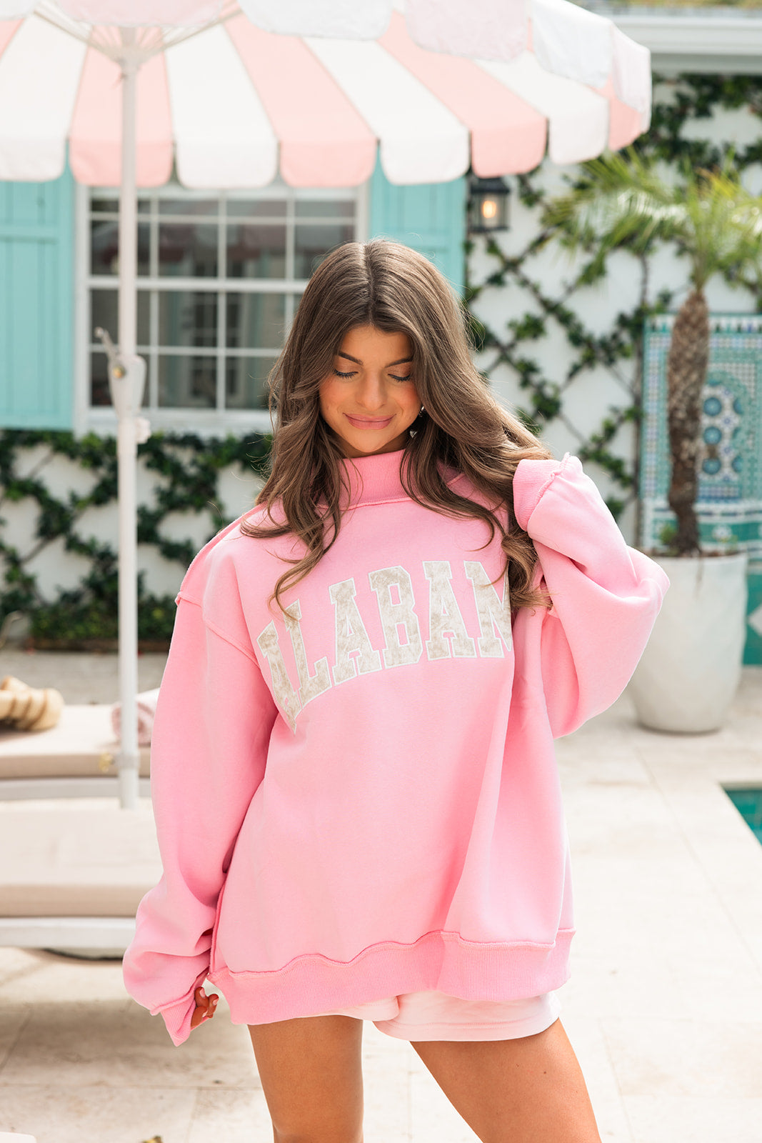 Your new favorite throw-on-and-go layer. This mockneck sweatshirt is designed in a soft pink hue with a relaxed, oversized fit and cozy fleece-lined interior for all-day comfort.