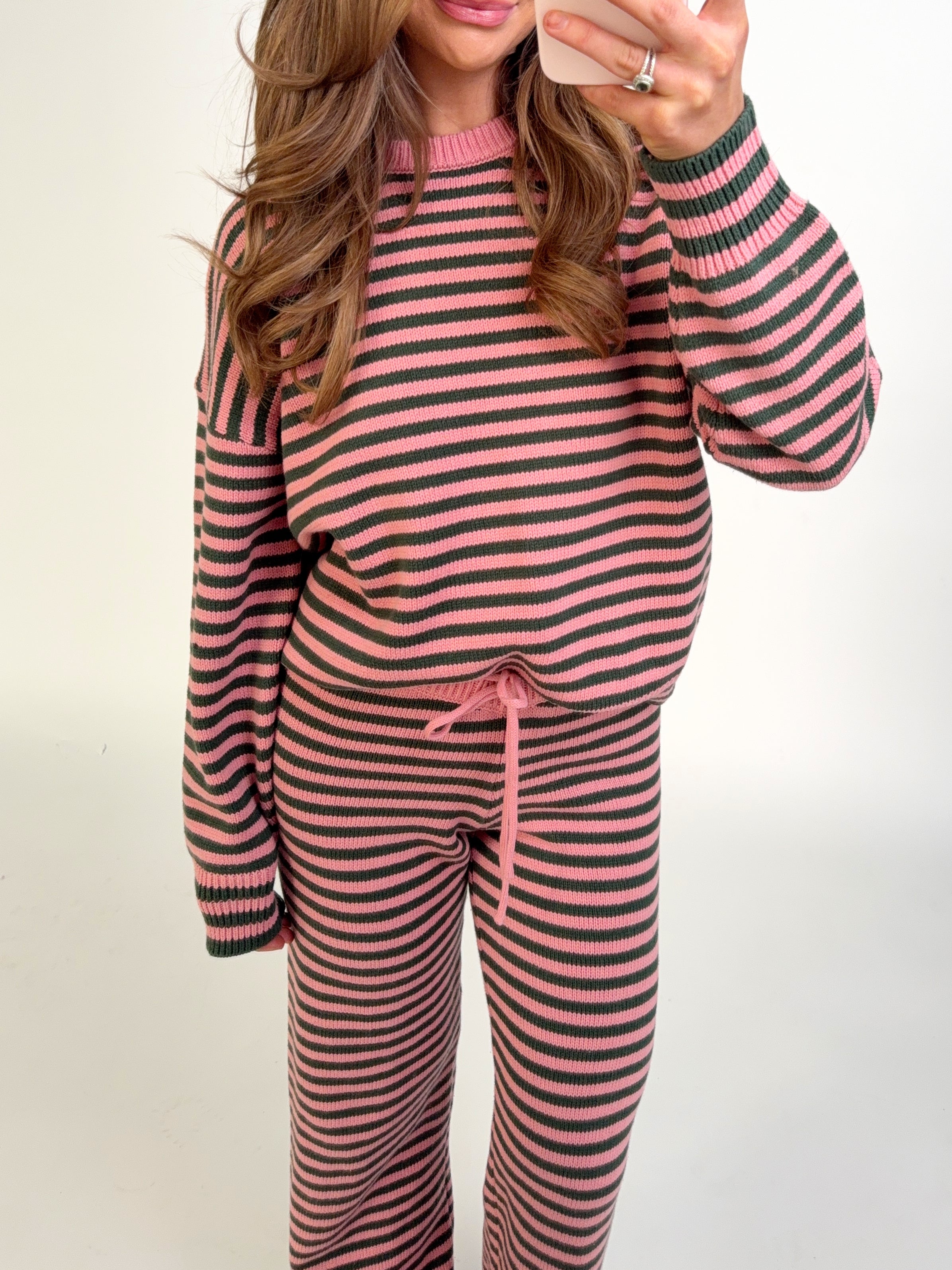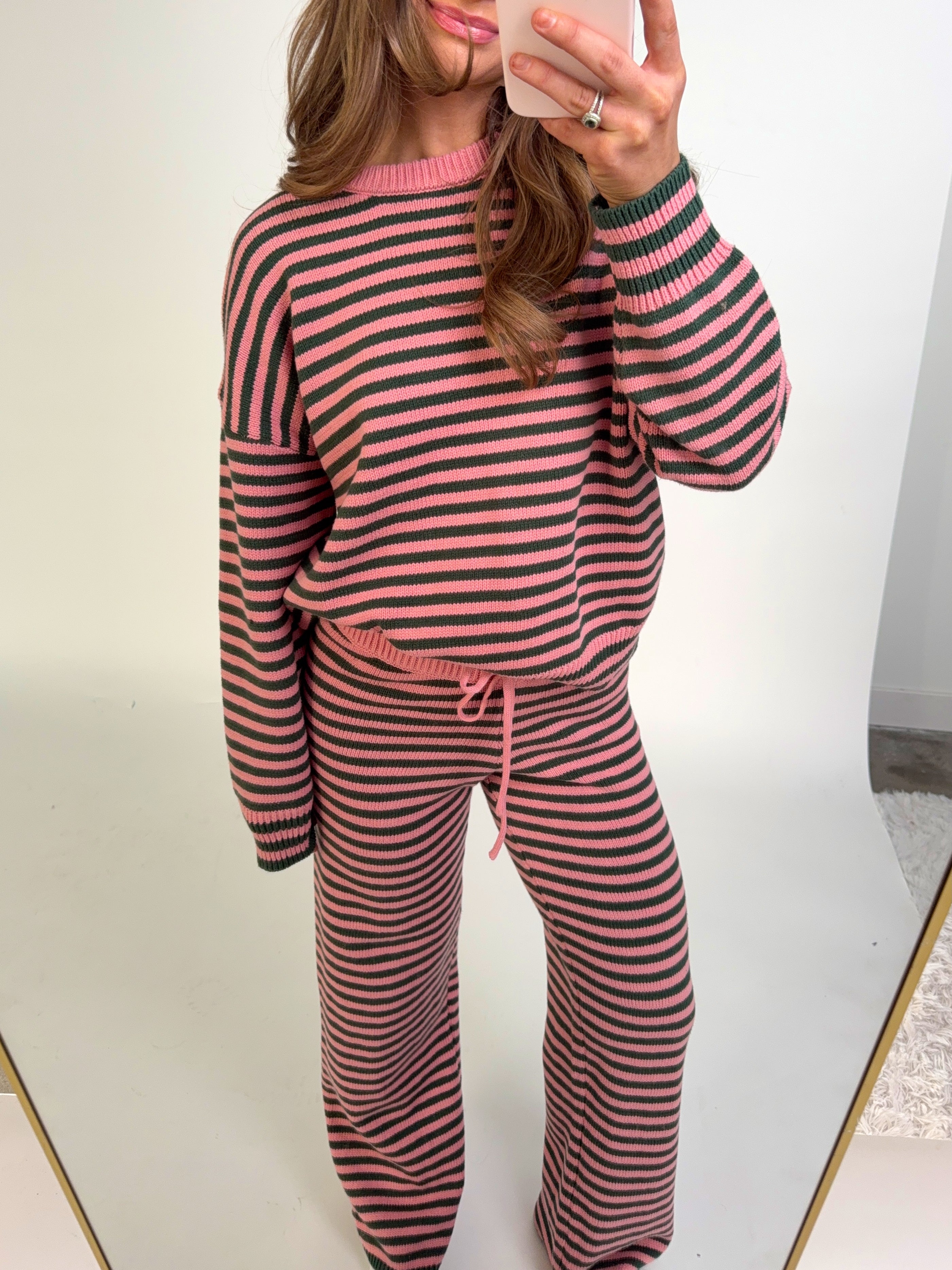 Cindy Lou Striped Sweater Set - Pink / Evergreen