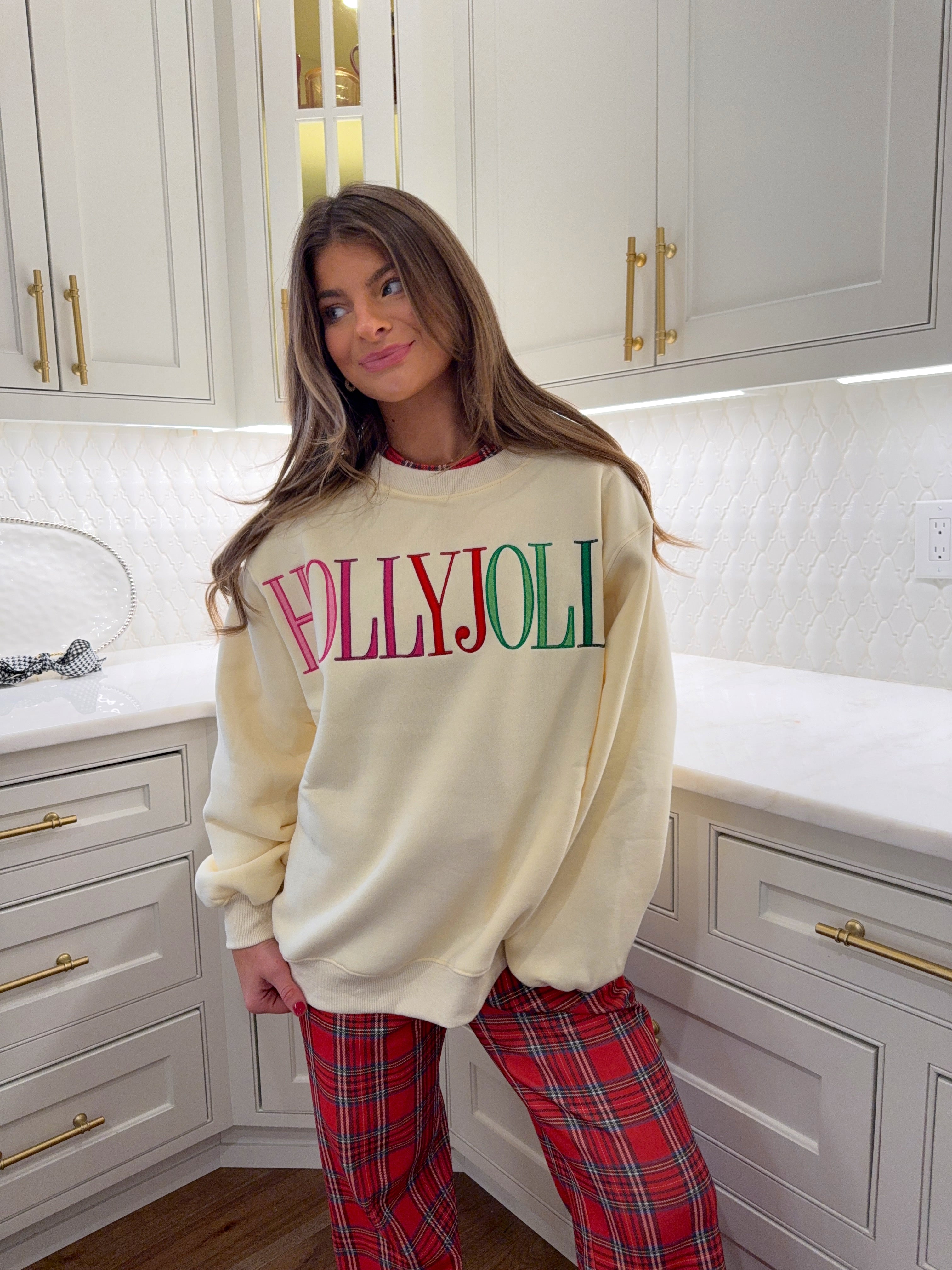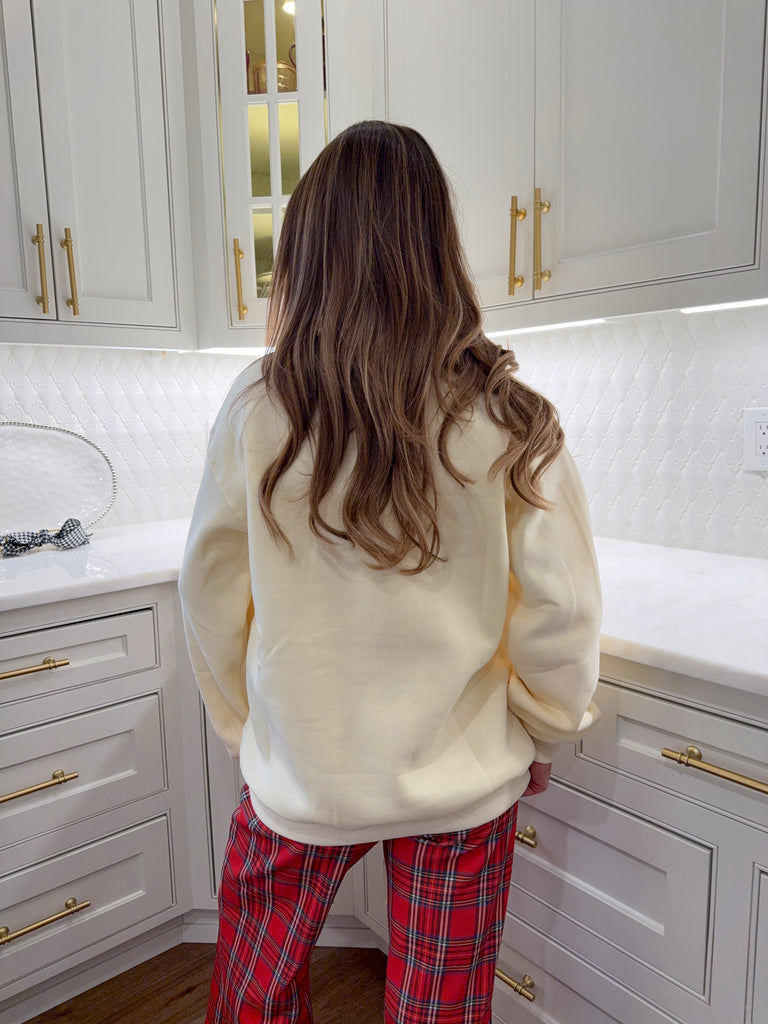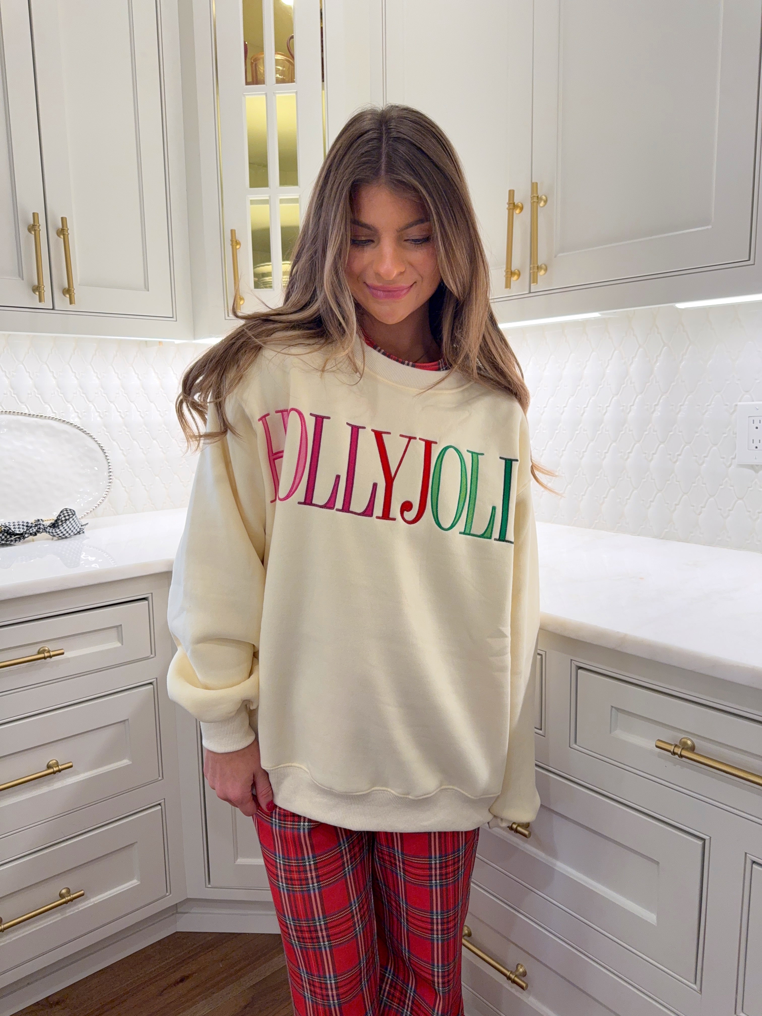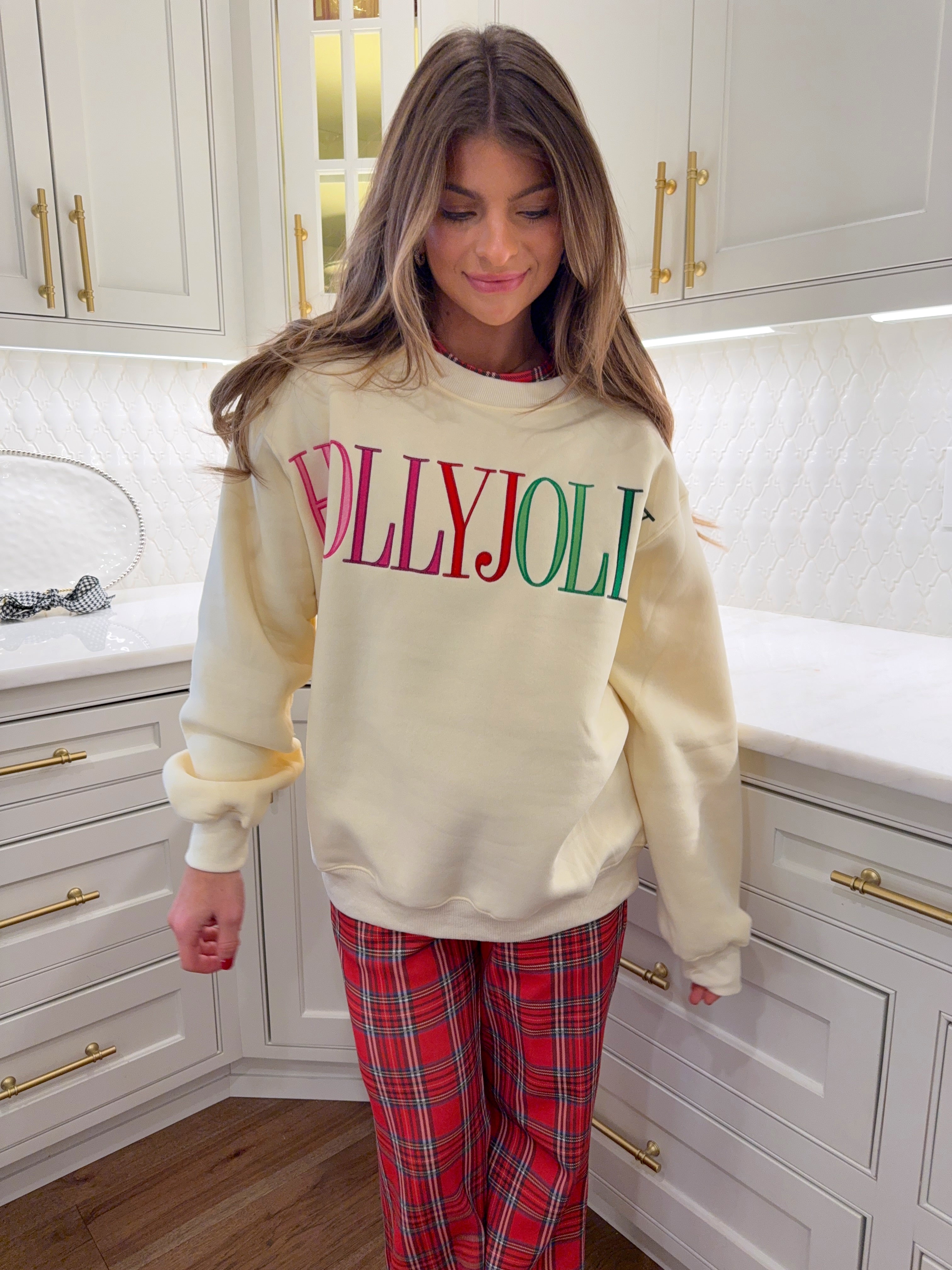 The Hollyjolly Embroidered Fleece Terry Sweatshirt features a soft, feminine fit crafted for effortless holiday comfort. Made for cozy Christmas parties, festive errands, or simply lounging at home during the most wonderful time of the year, this sweatshirt brings a touch of seasonal cheer to every moment.