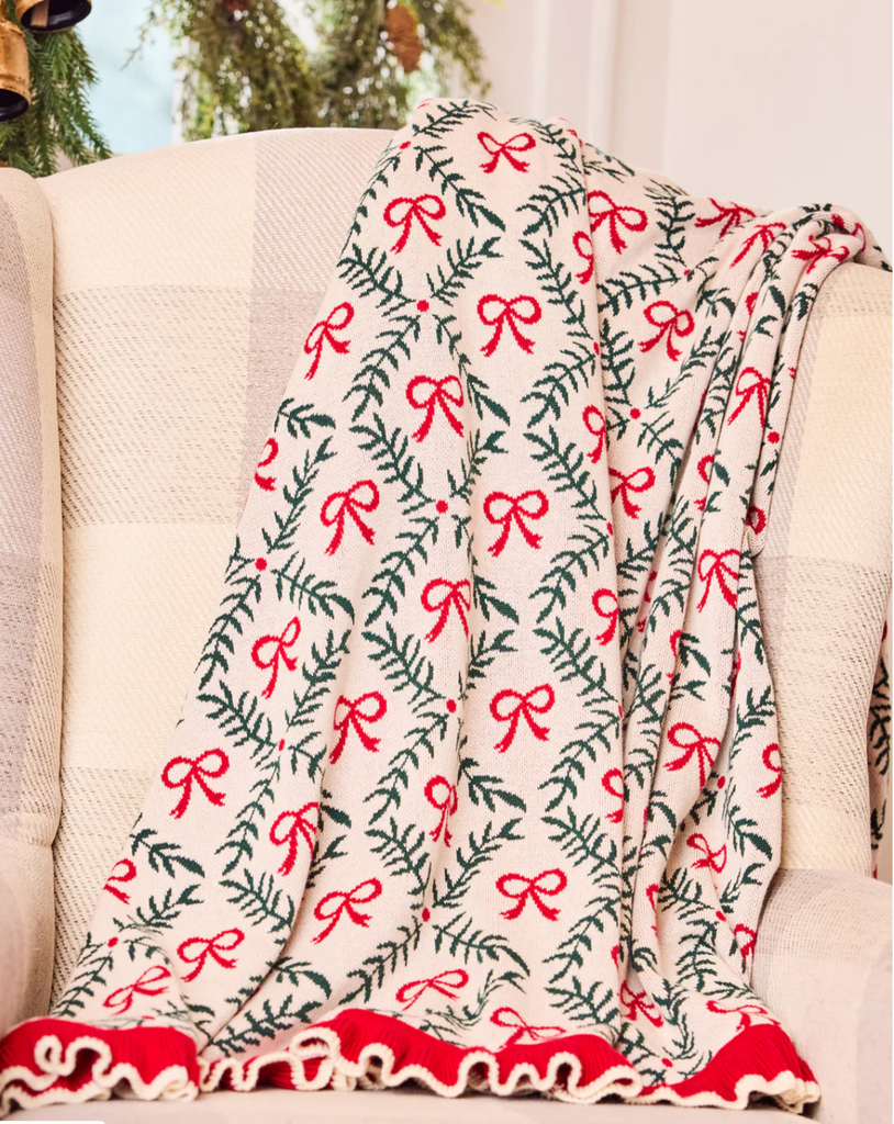 Sherpa Jacket With Gingham Lining and Holiday Trim