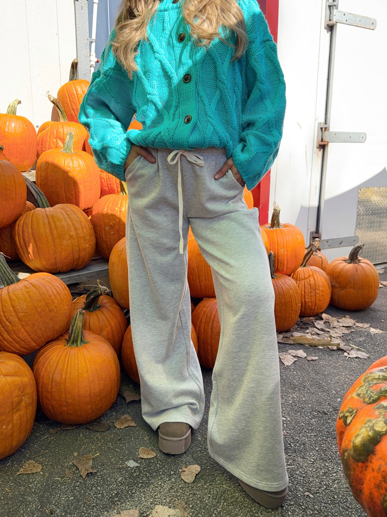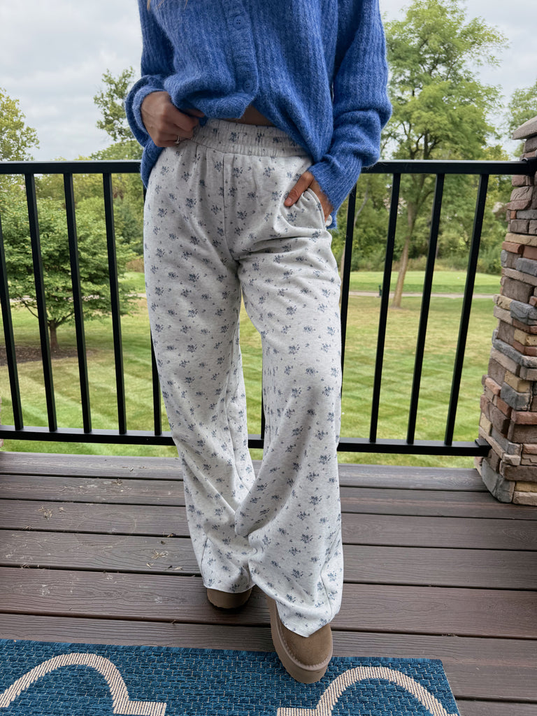 Halle Floral Print High Waist Wide Leg Sweatpants - Heather Grey