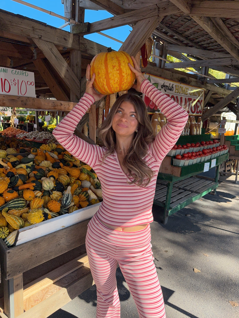 Raspberry Jam Striped Wrap Top and Flare Lounge Pant