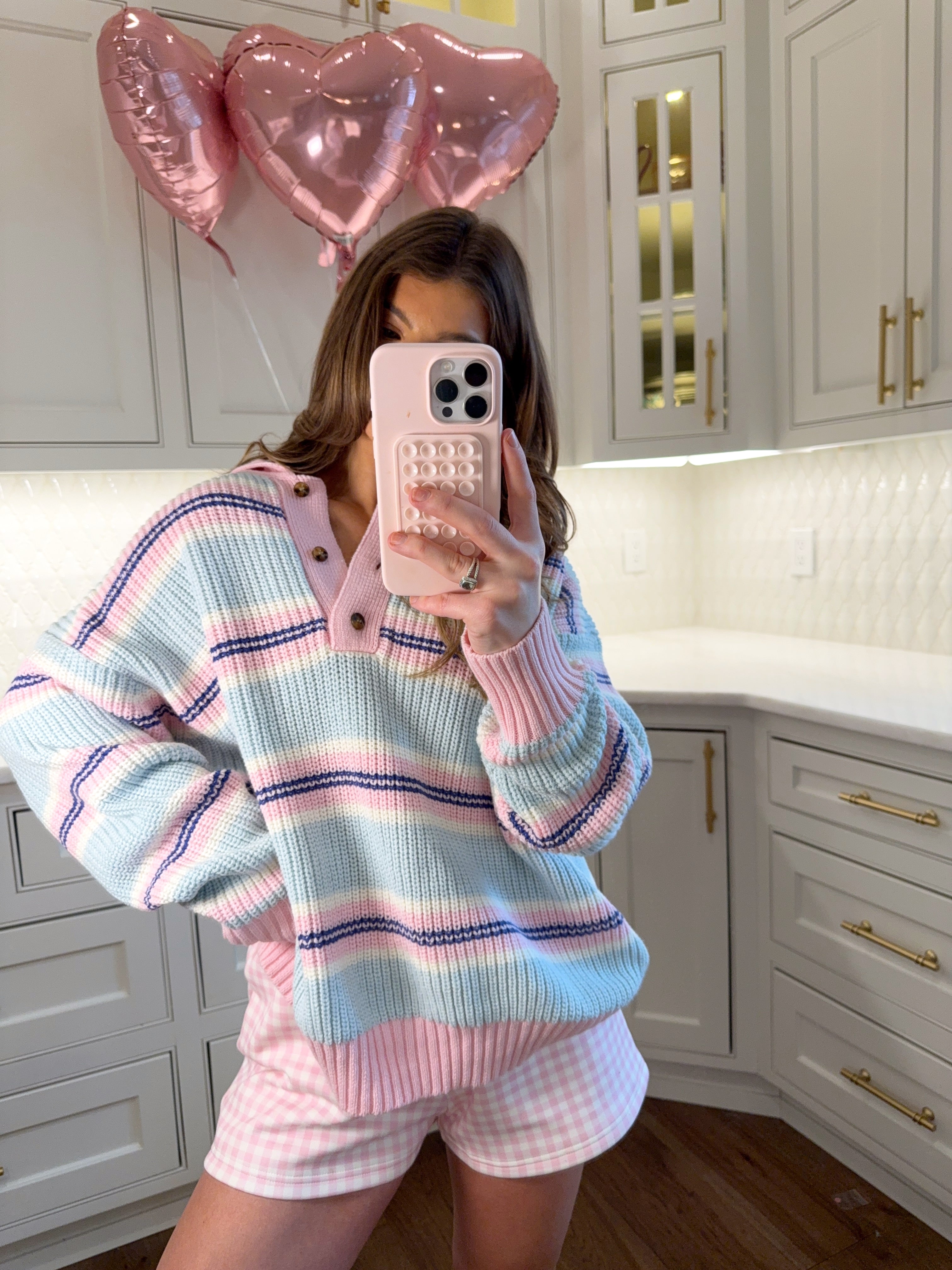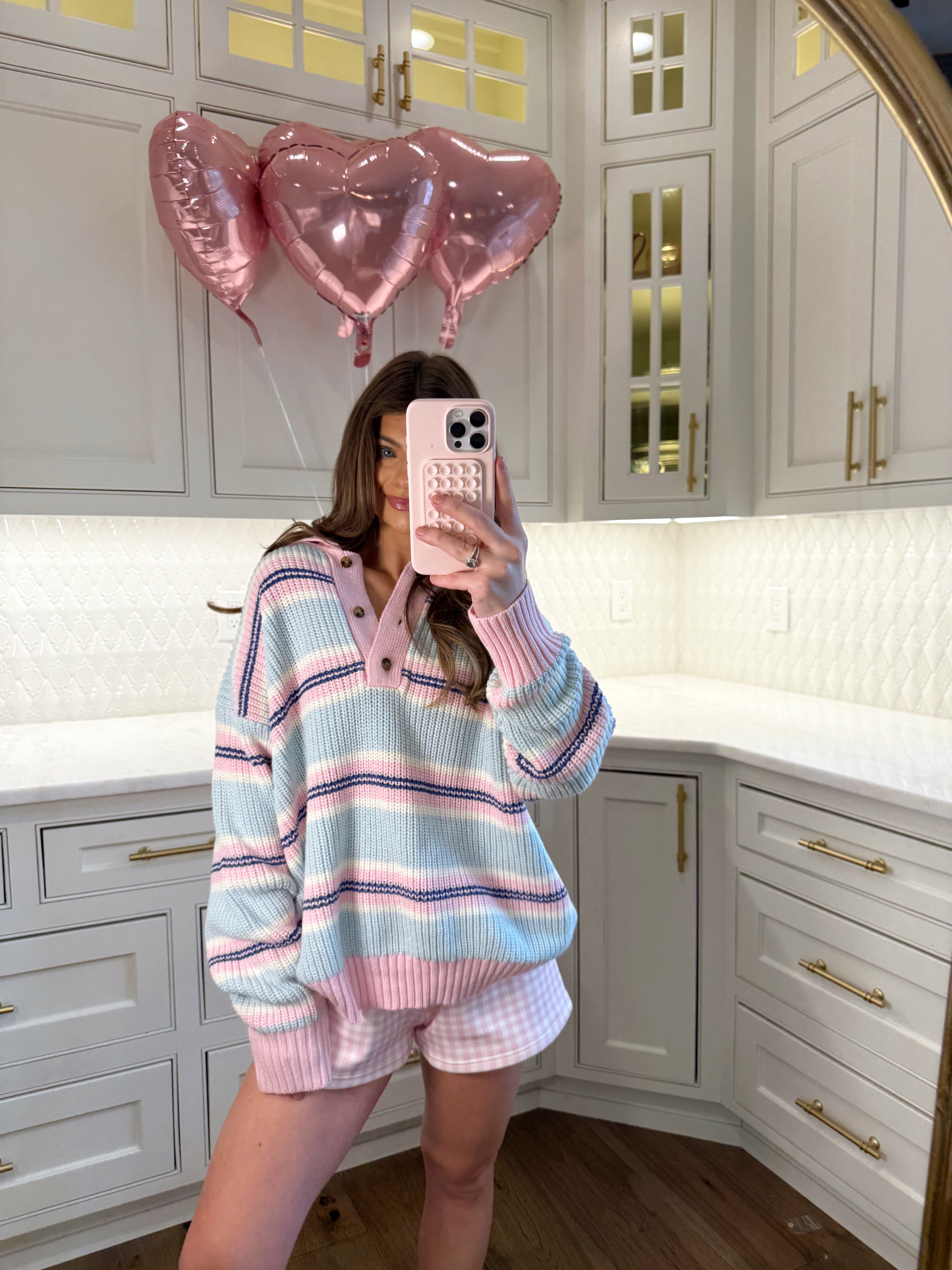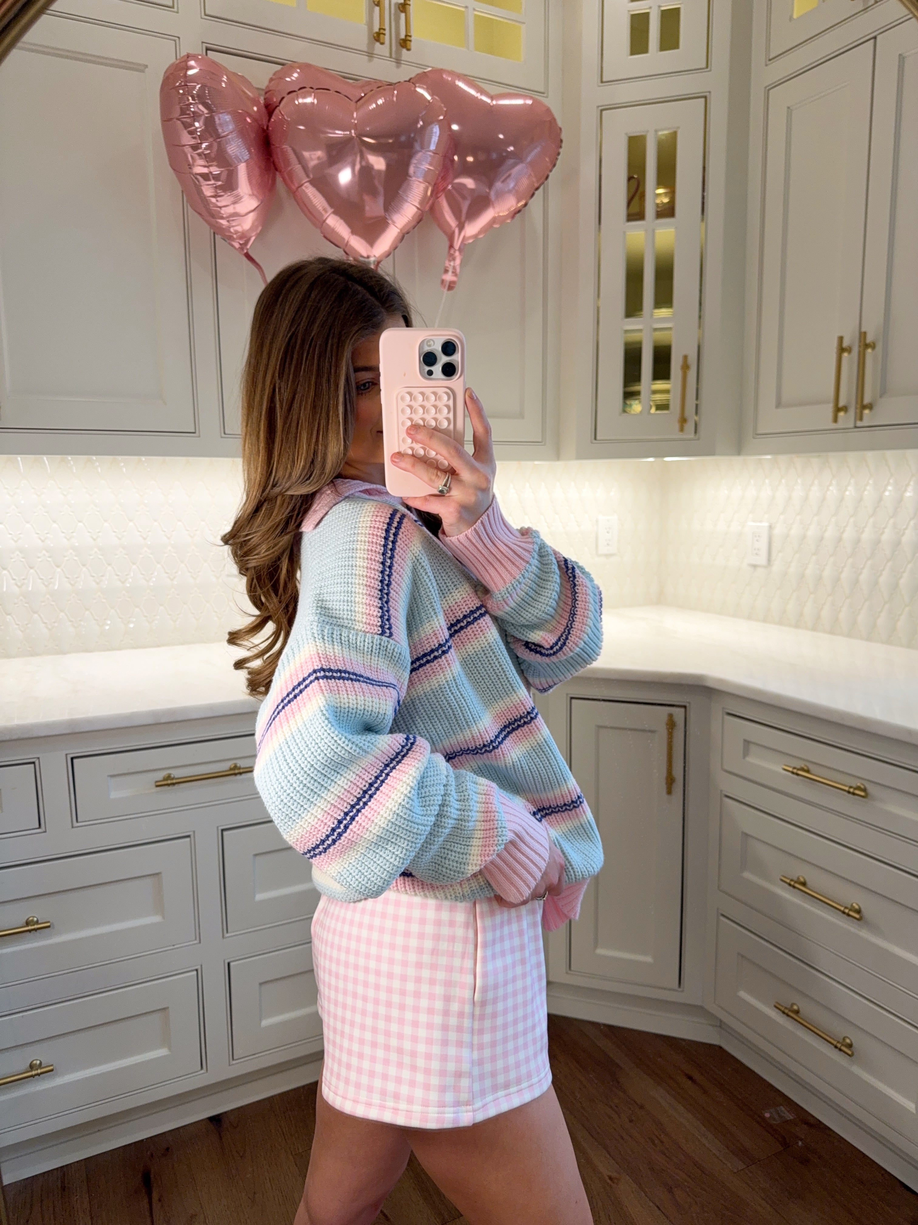 Annie Striped Knit Pullover - Icy Blue / Pink