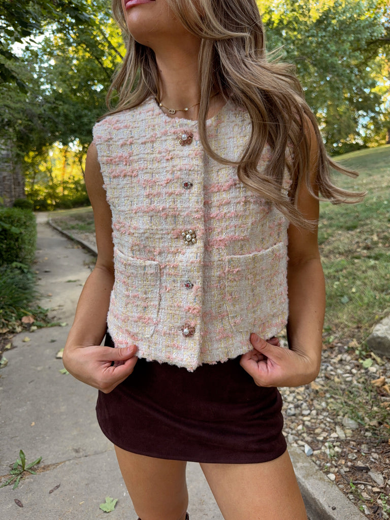 Stratford Tweed Sleeveless Vest - Pink / Ivory