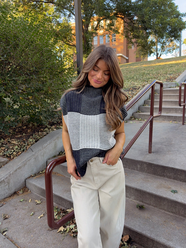 Pembrooke High Neck Shoulder Top - Cream / Black