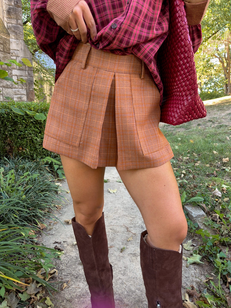 Reggie Plaid Skort - Burnt Orange