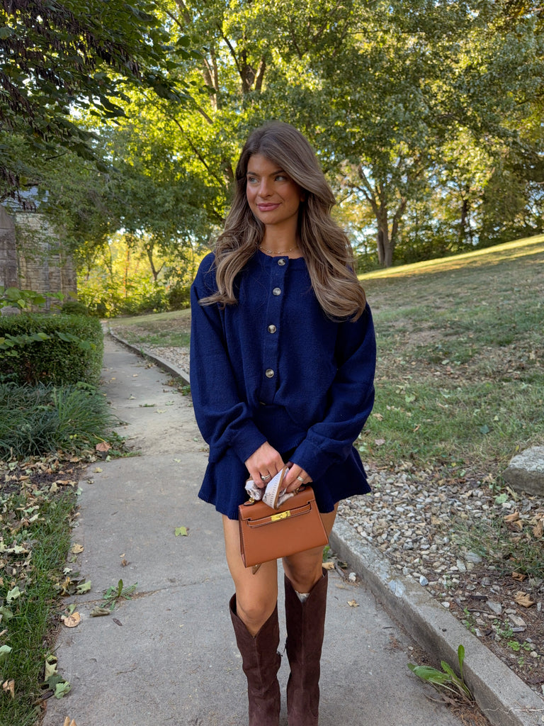 Belmont Sweater Cardigan and Skirt Set - Navy