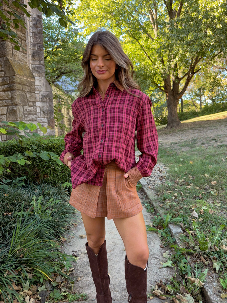 Reggie Plaid Skort - Burnt Orange