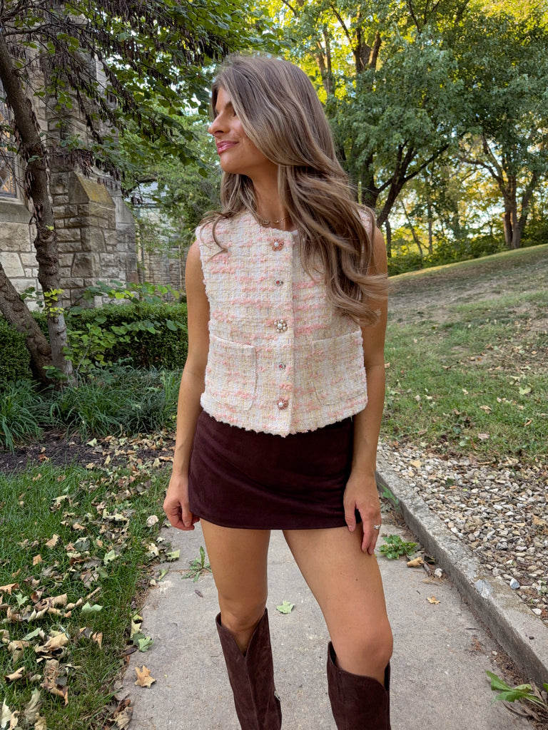 Tweed rhinestone special button front vest