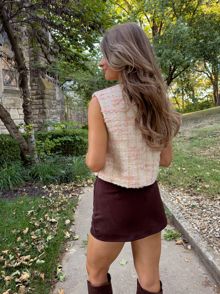 Stratford Tweed Sleeveless Vest - Pink / Ivory