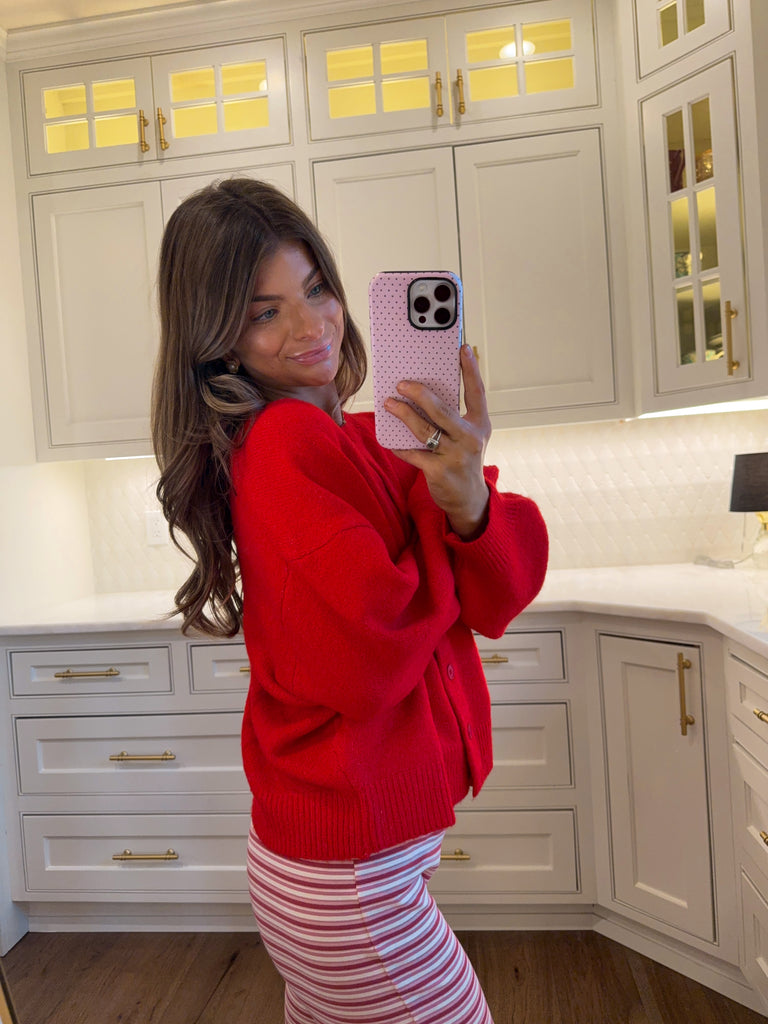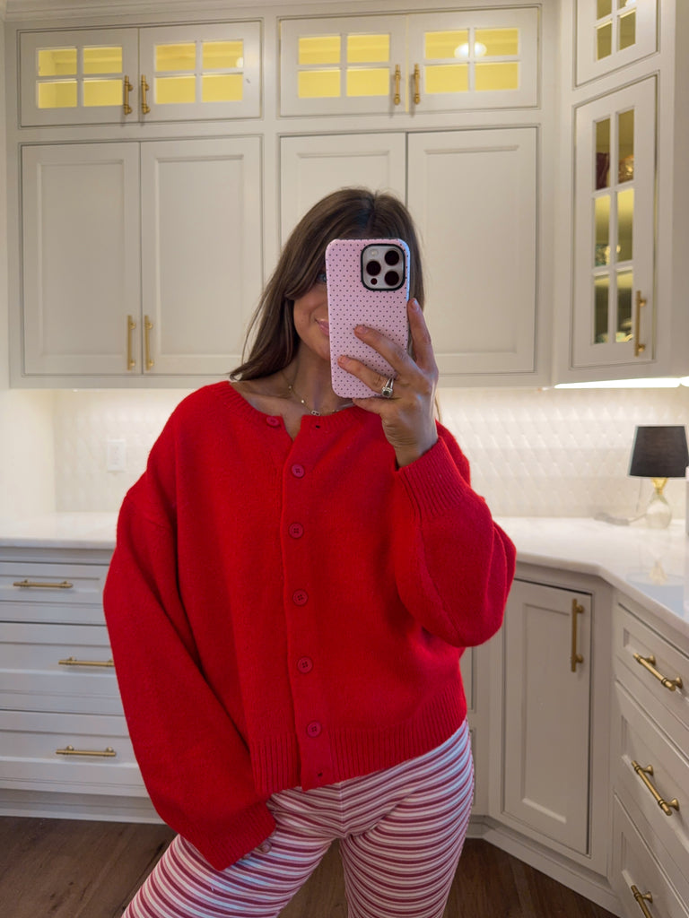 Honeycrisp Knit Button Up Cardigan Sweater - Red