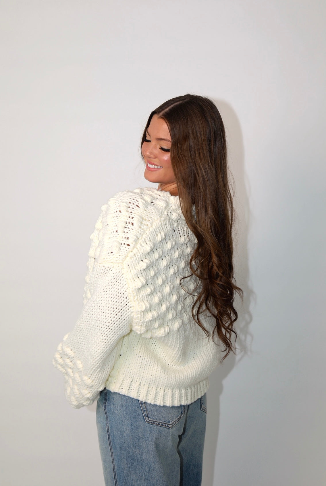 Staton Oversized Puff Sleeve Tie Front Cardigan - Cream / Mocha