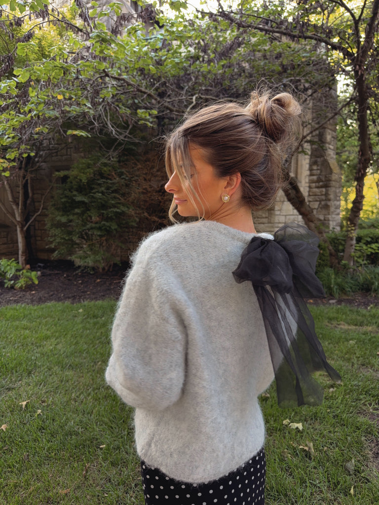 Cornelia Bow Detail Sweater - Heather Grey / Black