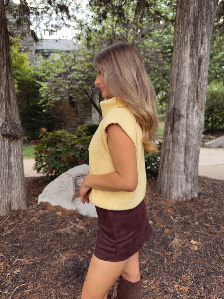 Yale Ribbed Sleeveless Turtleneck Sweater - Butter Yellow