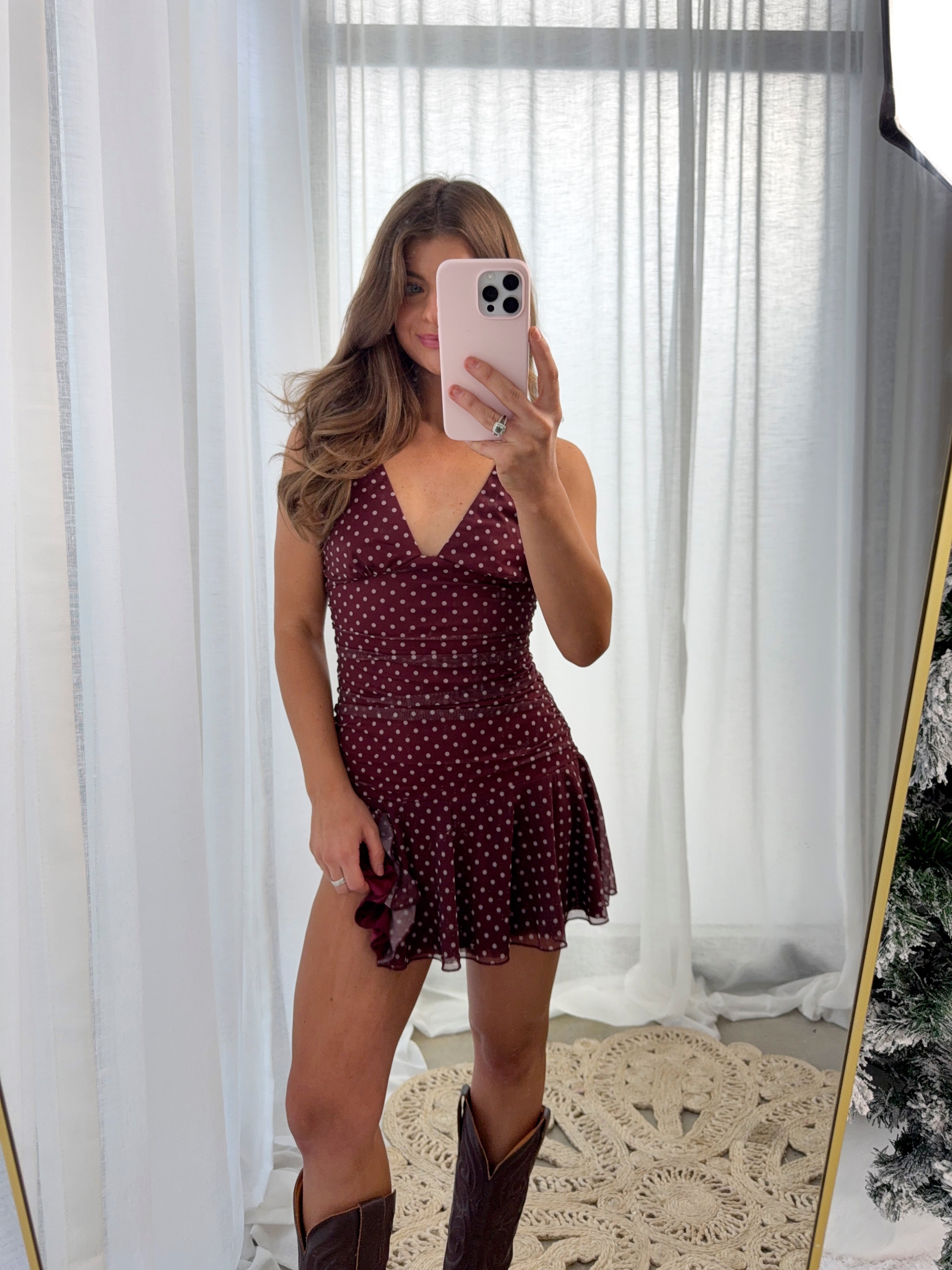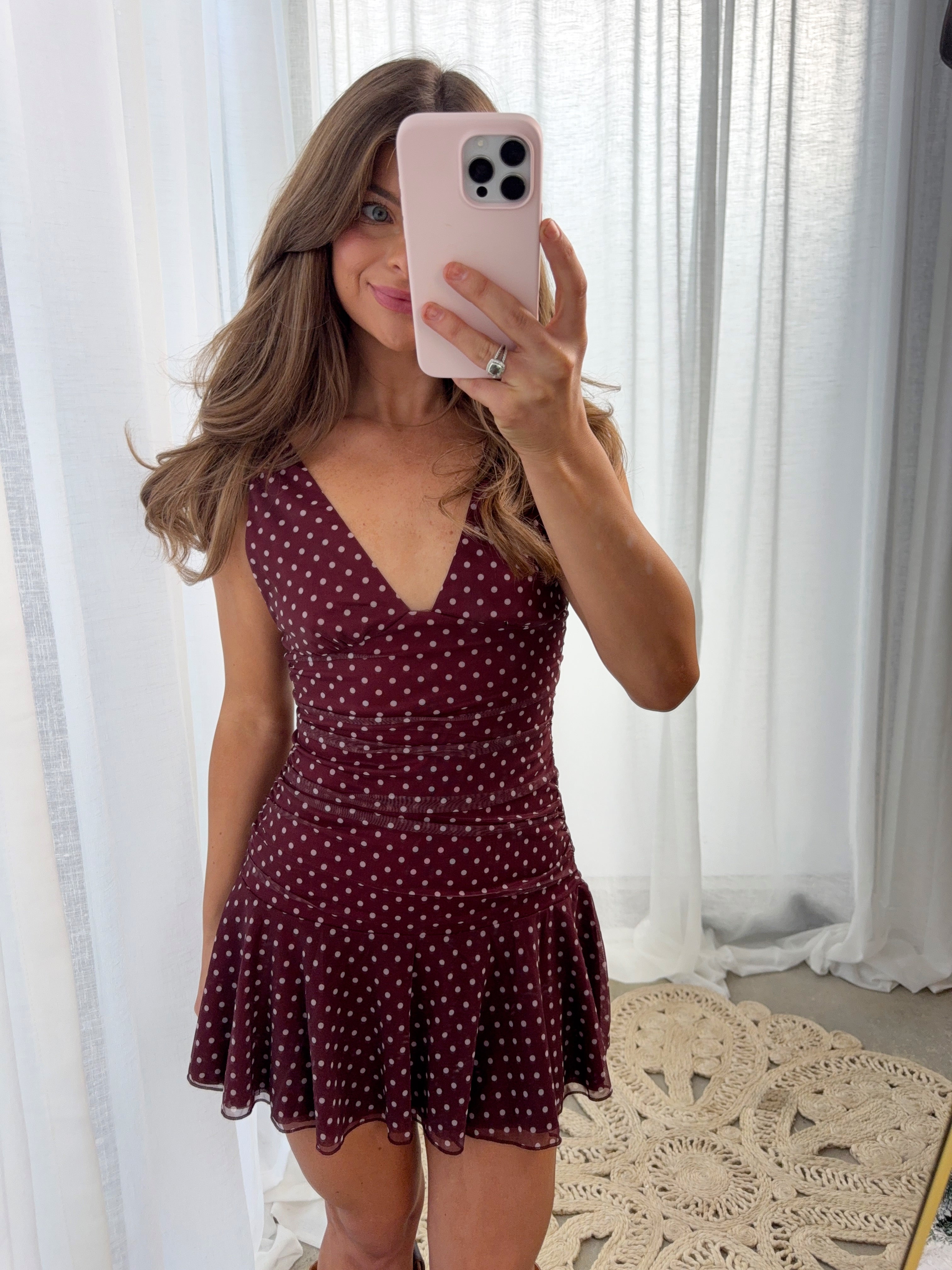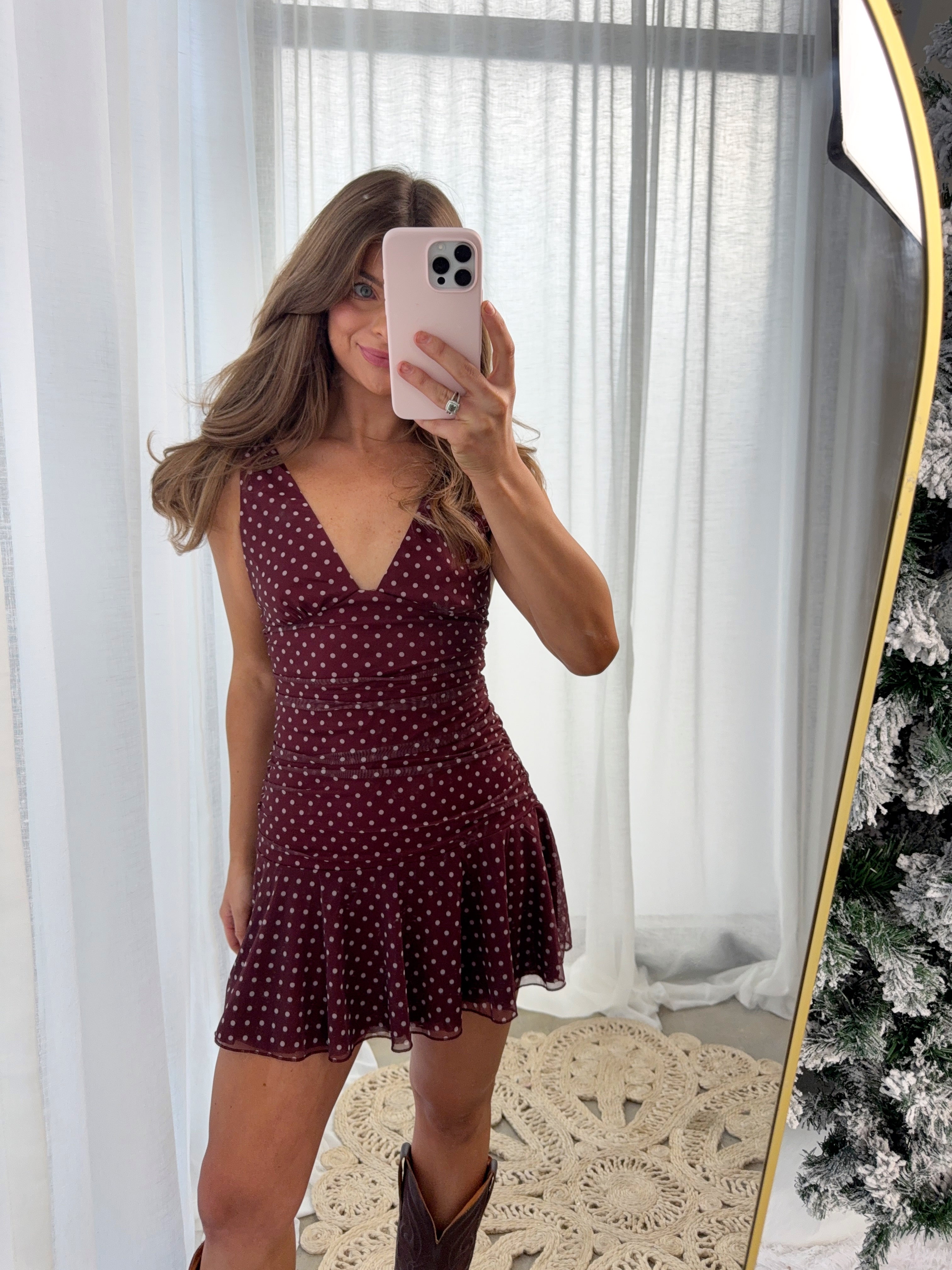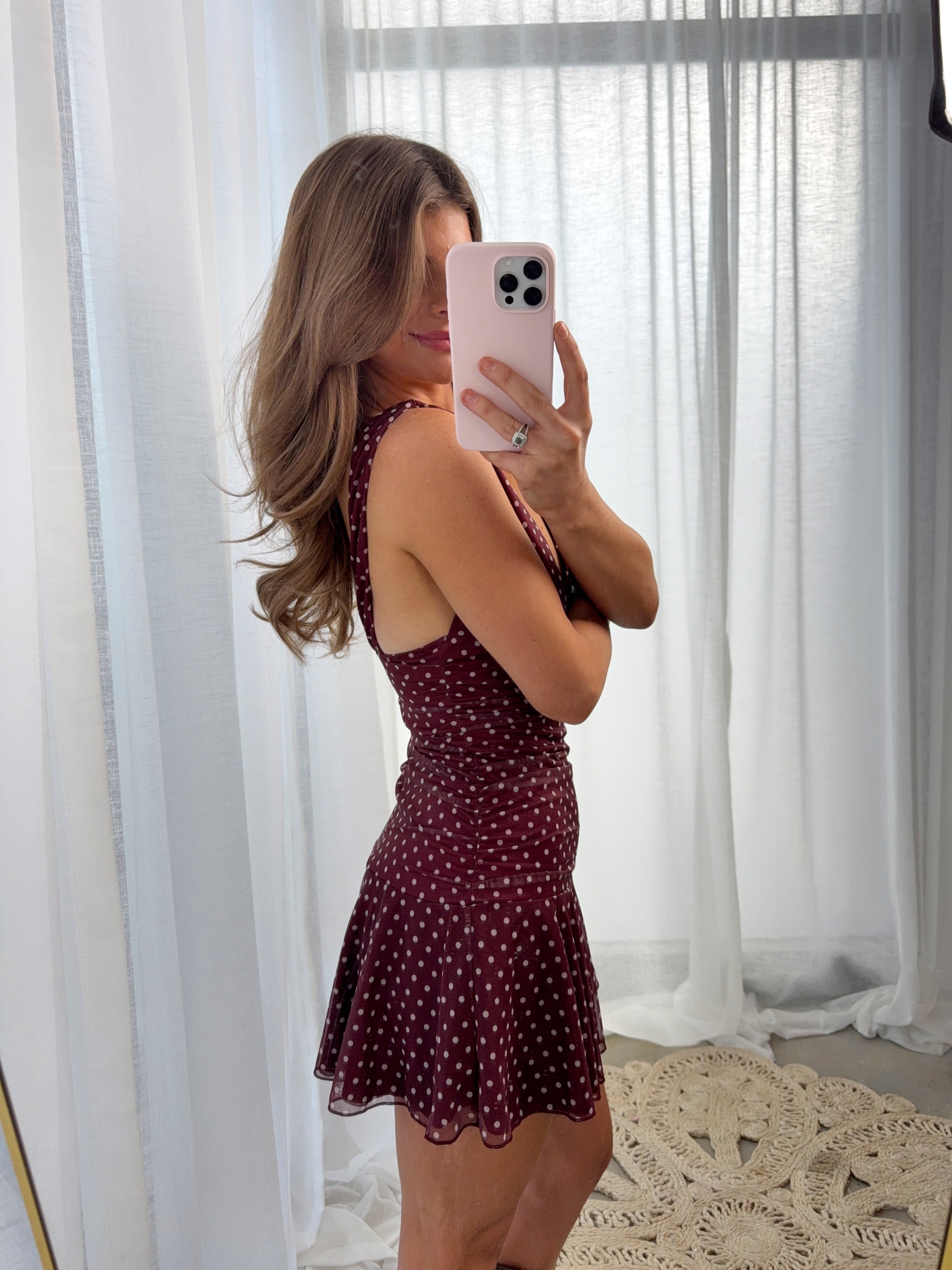 Sasha Fitted Polka Dot Mini Dress - Burgundy / White